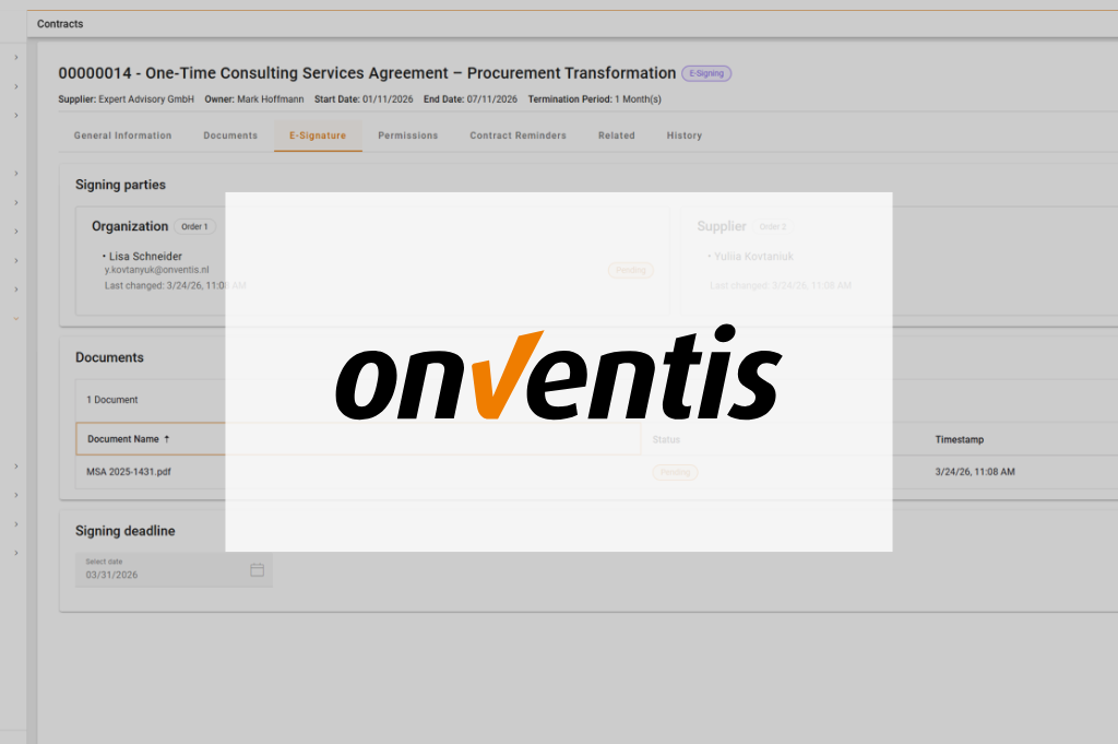 Onventis, l’intelligence « Source-to-Pay » , a conclu un partenariat avec Signicat, l’un des fournisseurs européens les plus reconnus de services d’identité numérique et de confiance. Dans le cadre de cette collaboration, un outil de signature électronique entièrement intégré et conforme à l’eIDAS, basé sur la technologie de Signicat, sera mis à disposition au sein de la solution Onventis Contract Lifecycle Management (CLM).